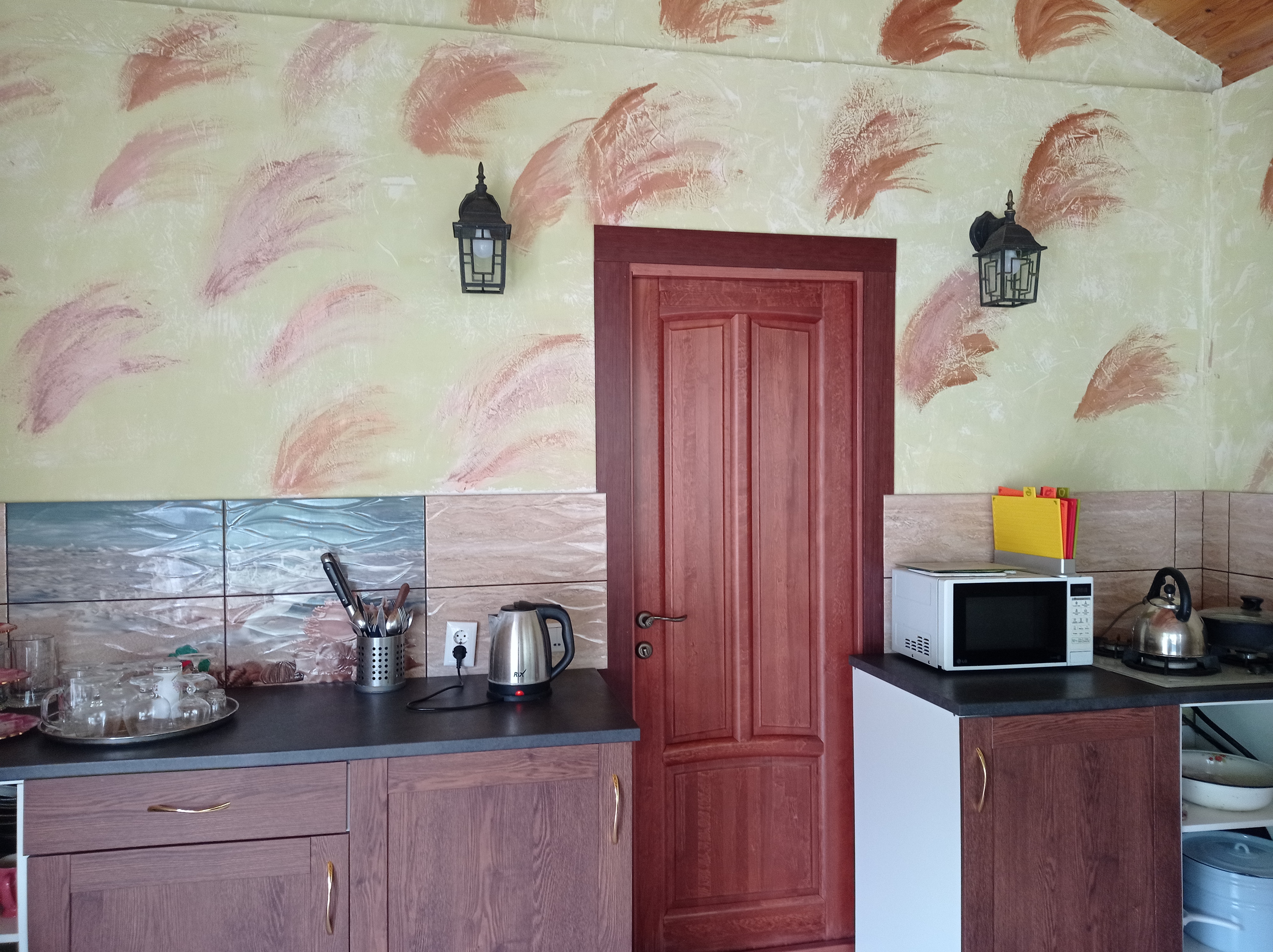 декоративную штукатурку. Гостиная совмещенная с кухней