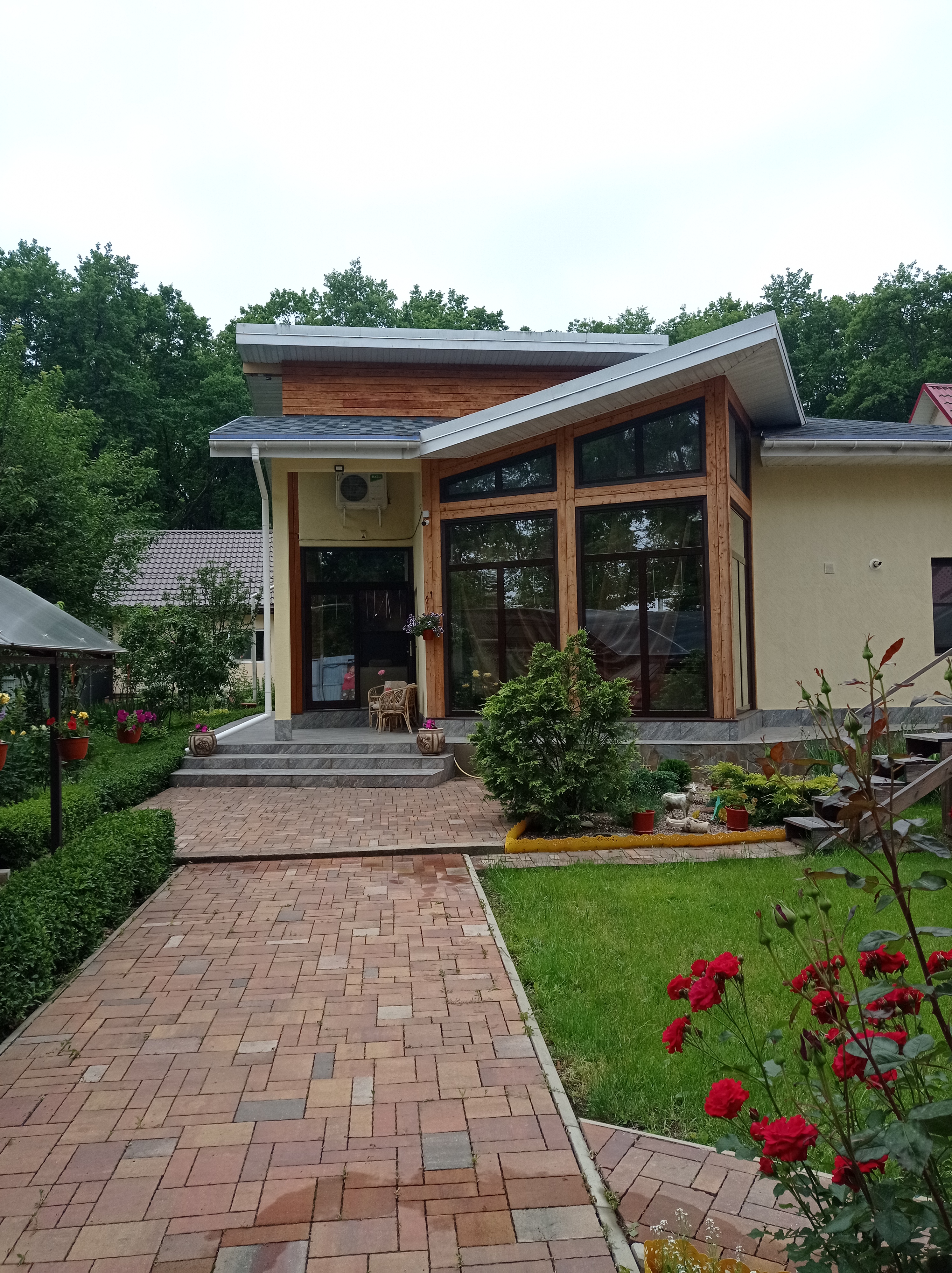 одноэтажный, необычный, современный дом по