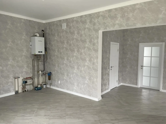 Новый дом с отделкой, вода в доме, септик, электричество есть. газ подключен.